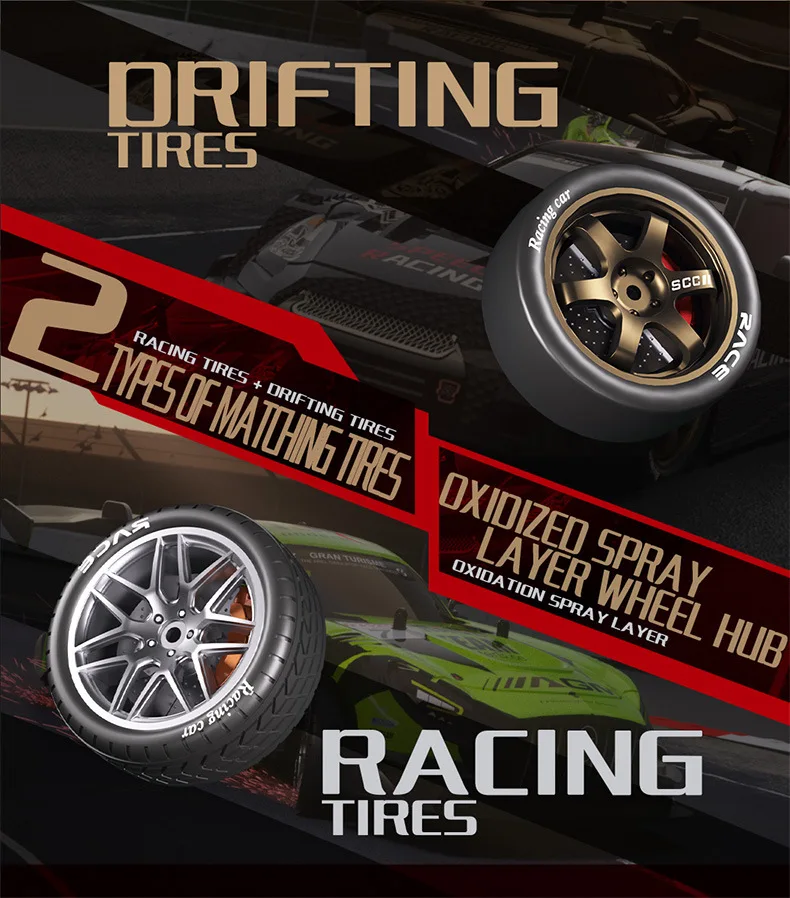 Accessories include: remote control car, gun type remote control, lithium battery, USB charging cable, manual, screwdriver, roadblock * 4, spare tire * 4