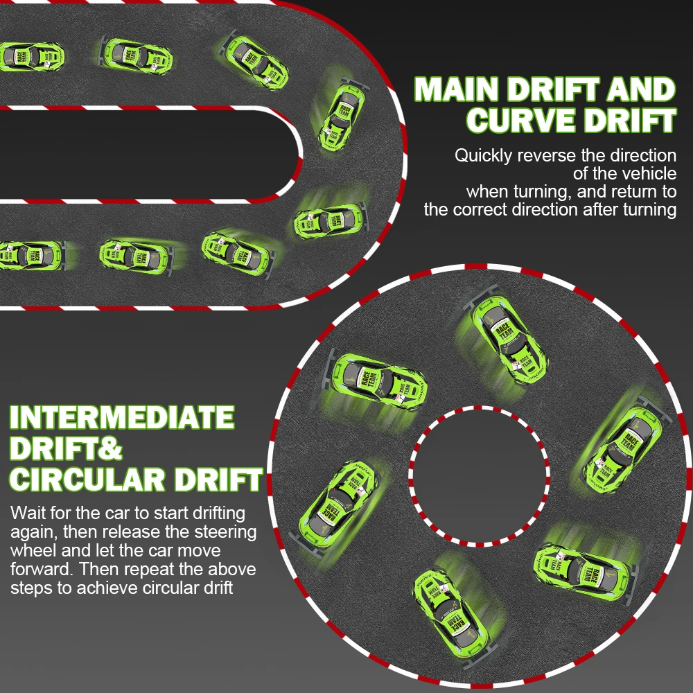 Features and functions: Forward, backward, drift, turn signal flashing, speed regulation