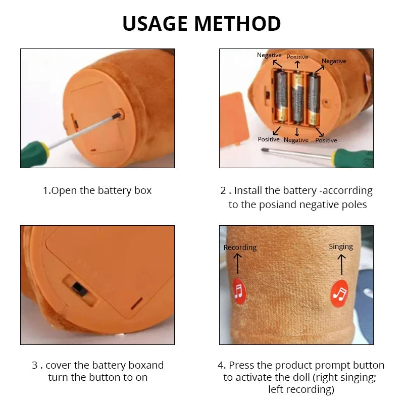 • Dancing and Singing :The cactus toy dances and sings, adding a lively and playful element to any space.